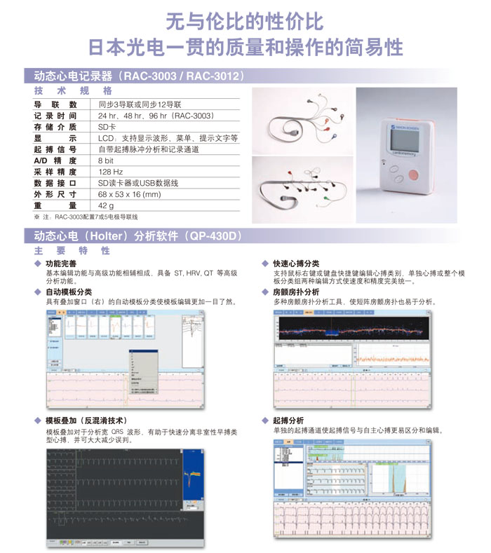 MDSIN麥森品質(zhì)提供的日本光電動態(tài)心電記錄器(3導),