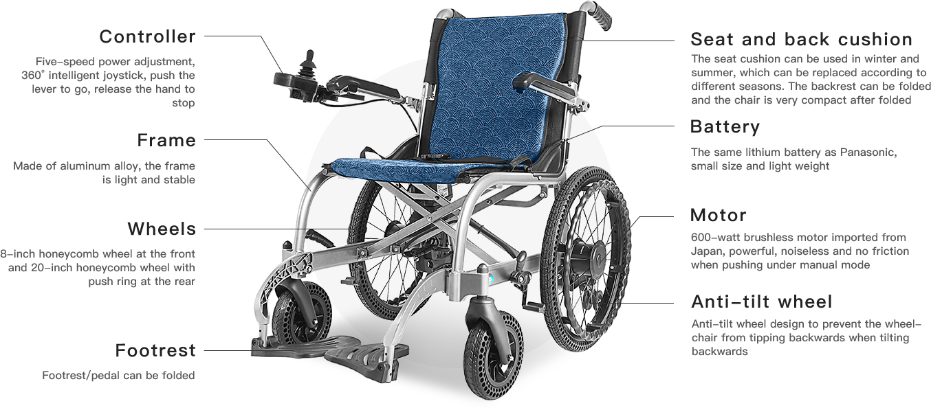 Long battery life, strong power, good on all terrain. Humanized design, easy to fold, easy to carry, worry-free travel. Intelligent control, safe and comfortable, making every trip easy and enjoyable.